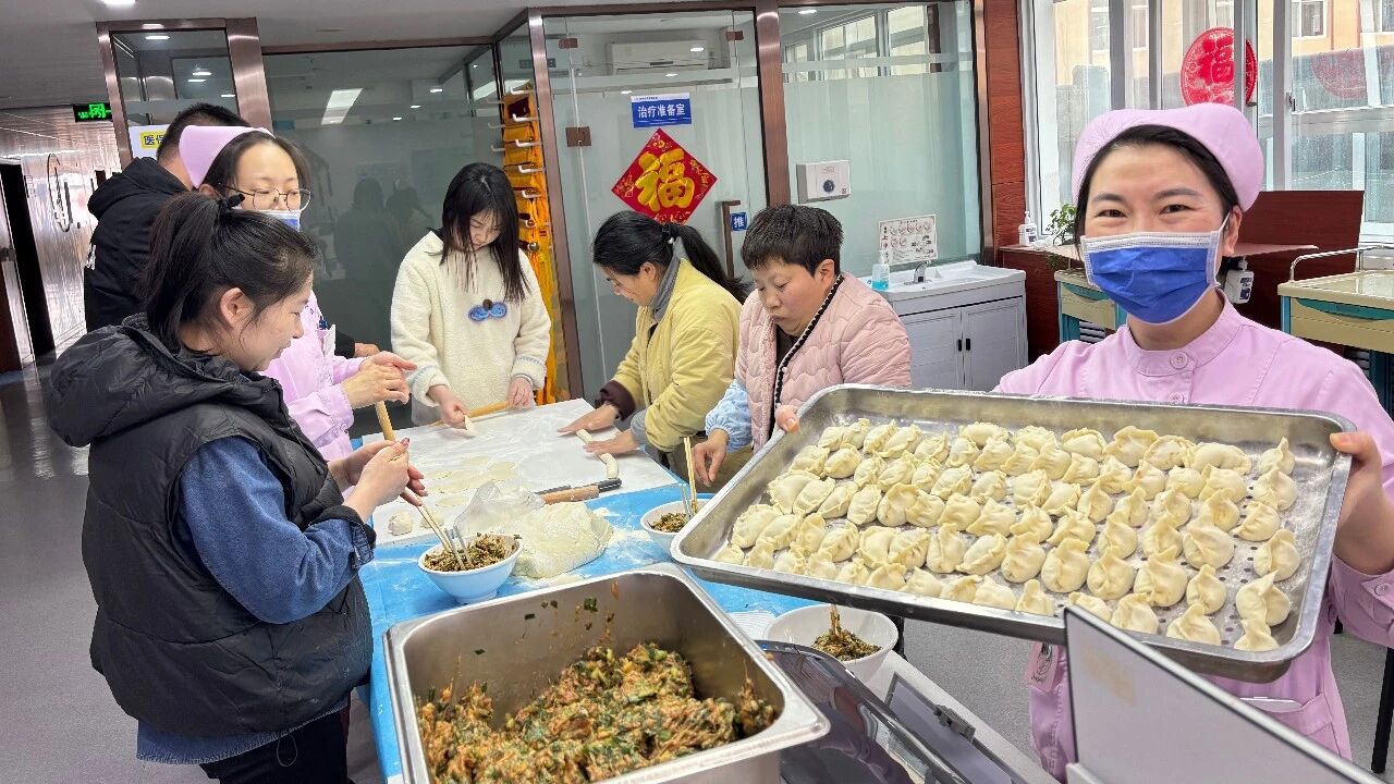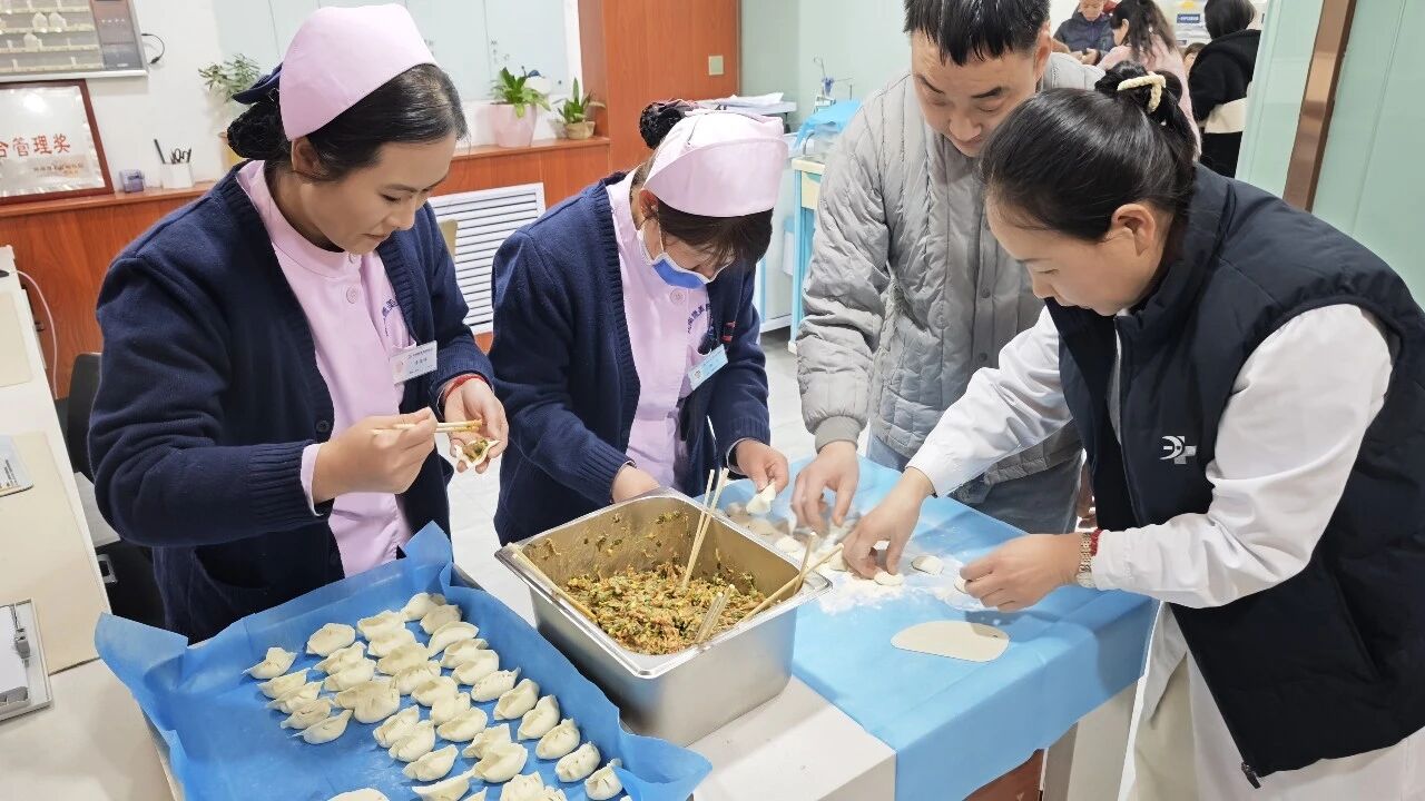 下午2时,医院各病区活动室早已布置一新,医护人员提前准备好了新鲜的馅料、面团。活动伊始,大家便自发分工,有的揉面、有的擀皮、有的包制,现场气氛热烈而温馨。